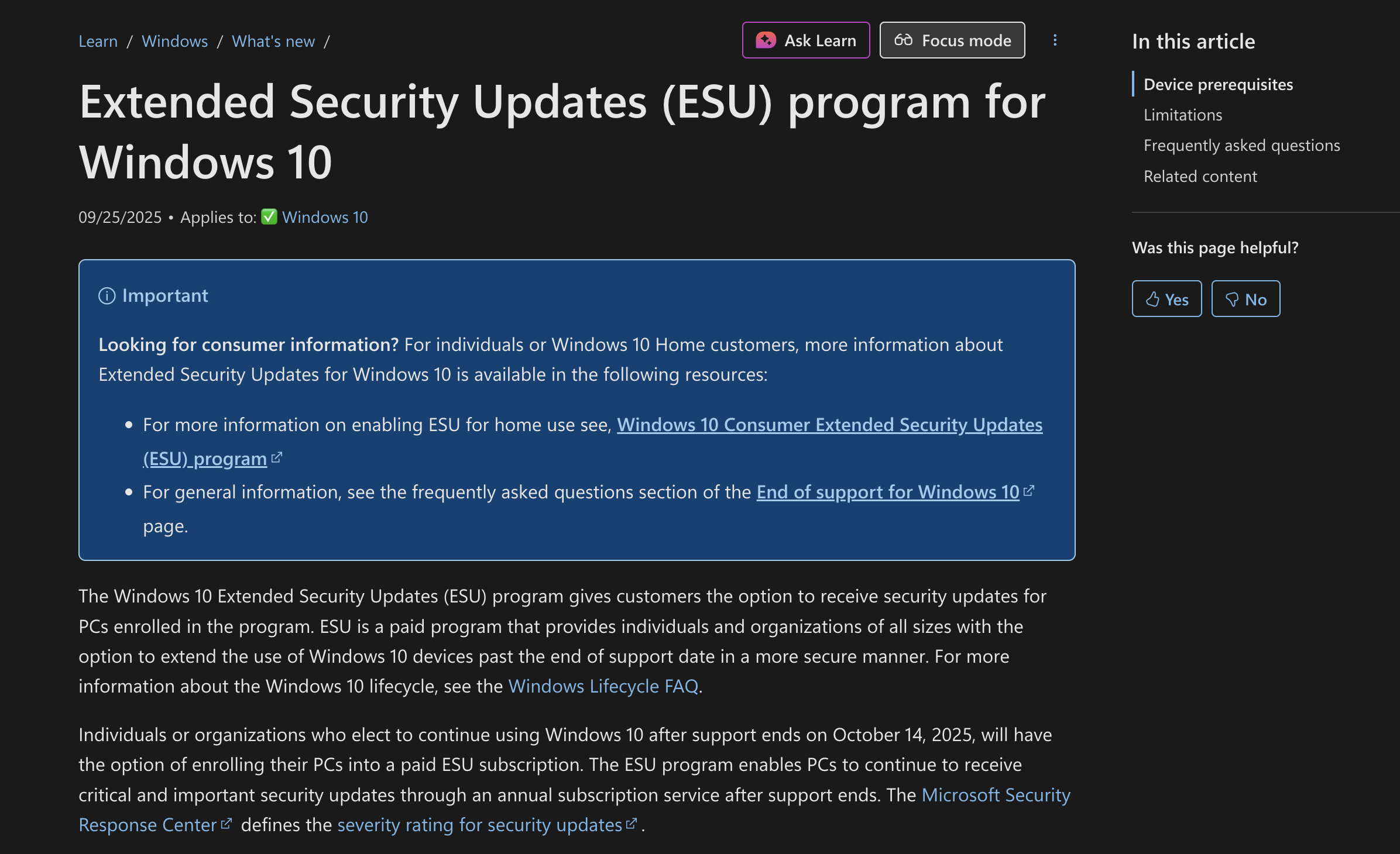 Windows `10 ESU for business