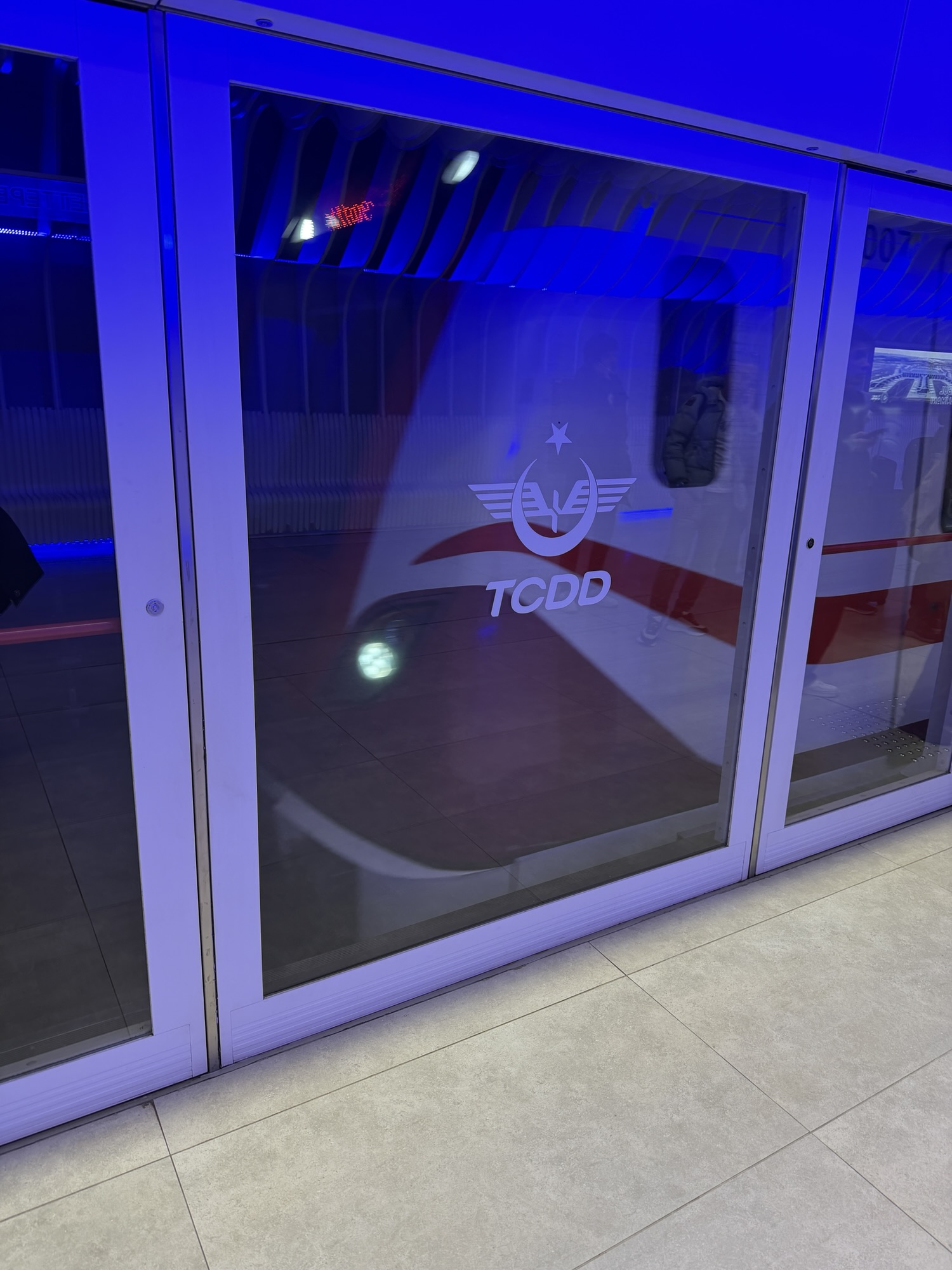 a glass door with a logo on it