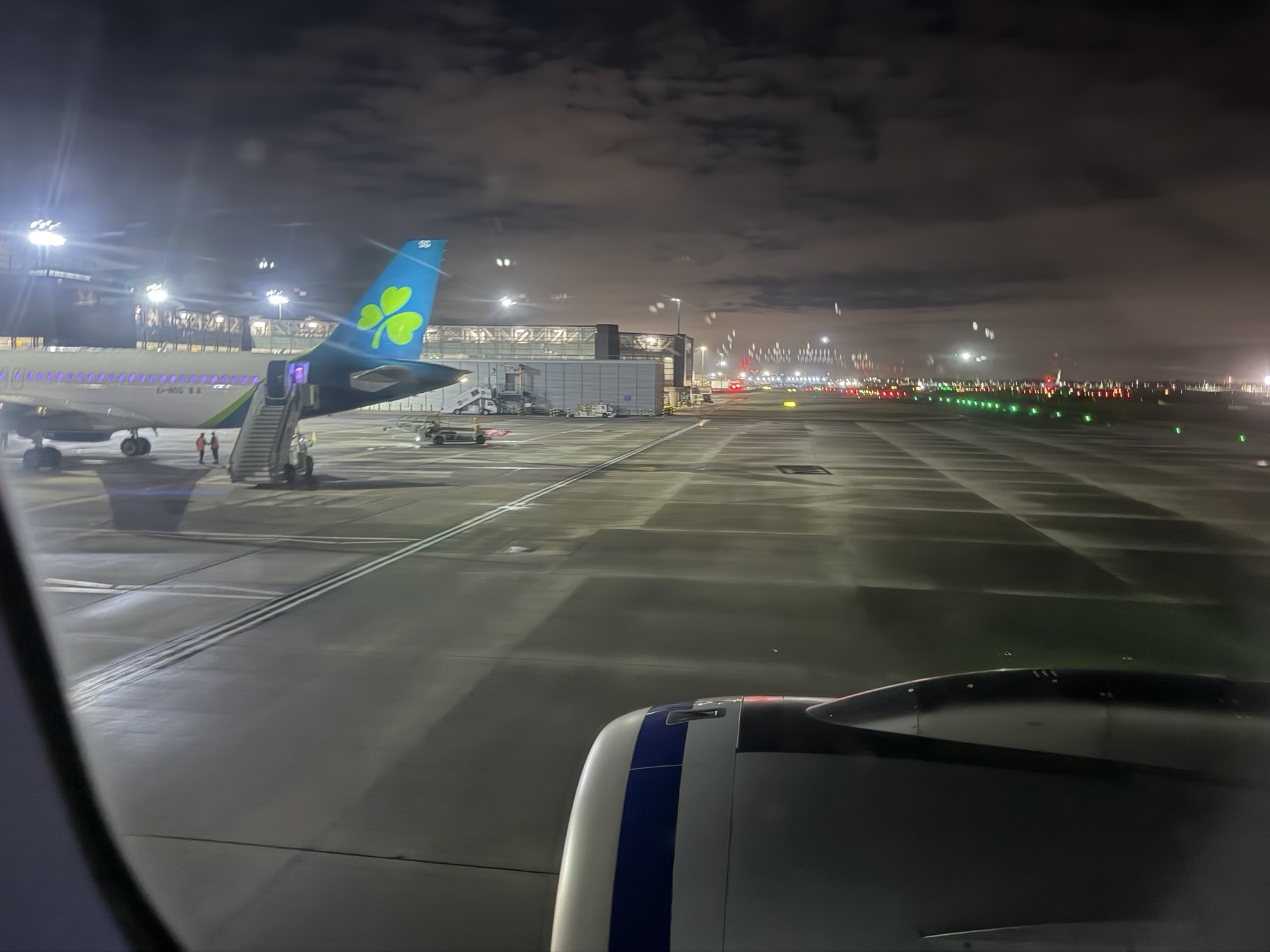 an airplane on the runway at night